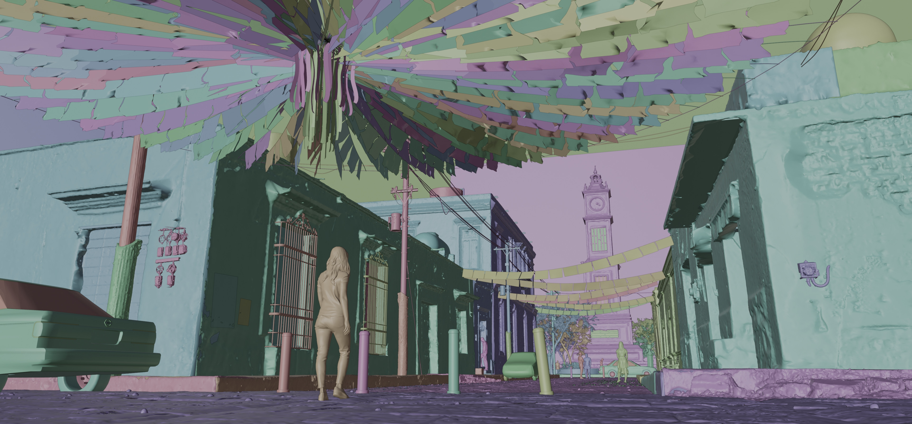 In addition to the assets For my example renders I made a geometry nodes tool to create string flags (papel picado). Just draw some curves and you have animated flags on a string!