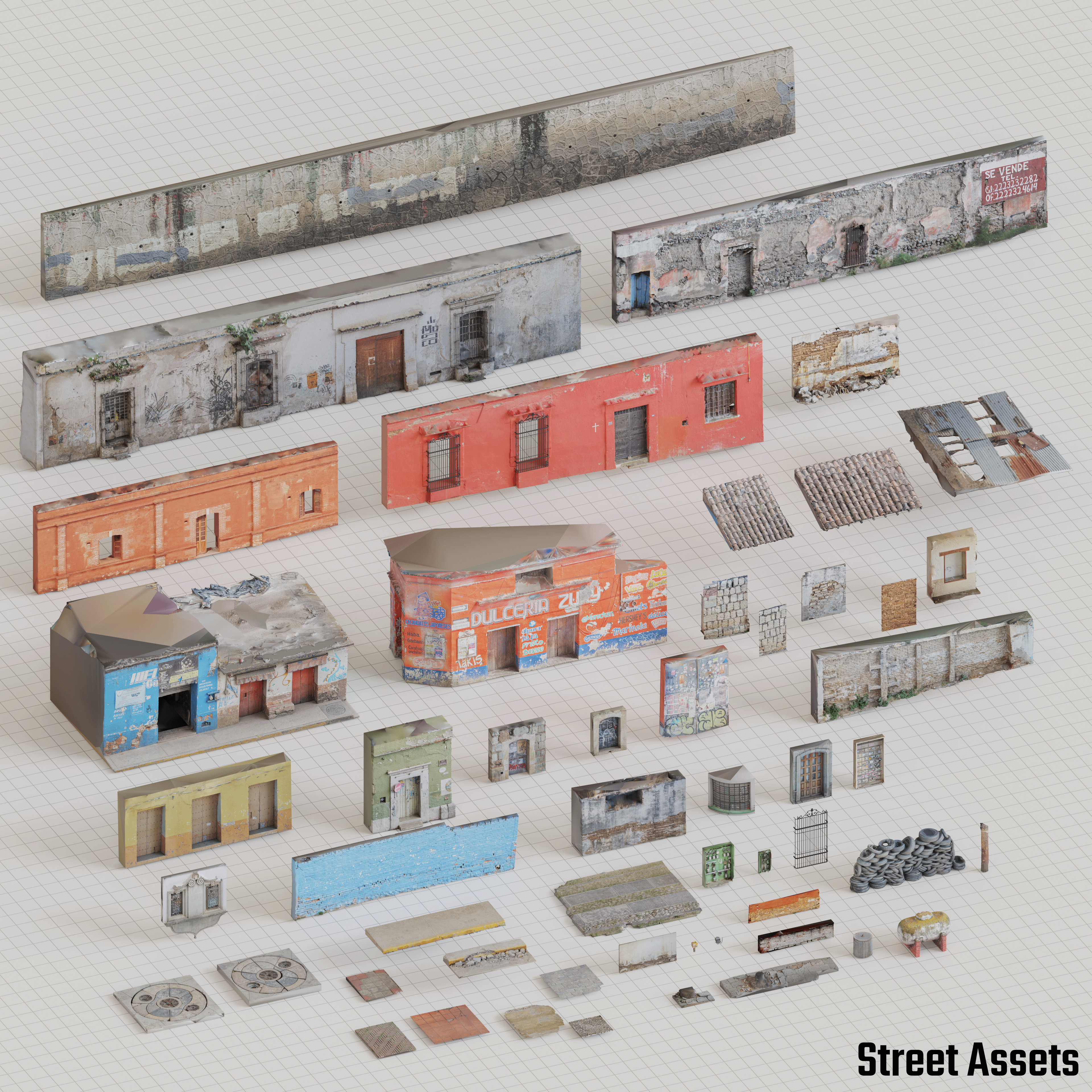 All of the assets are set up in blender files and ready to be plugged into your asset library!